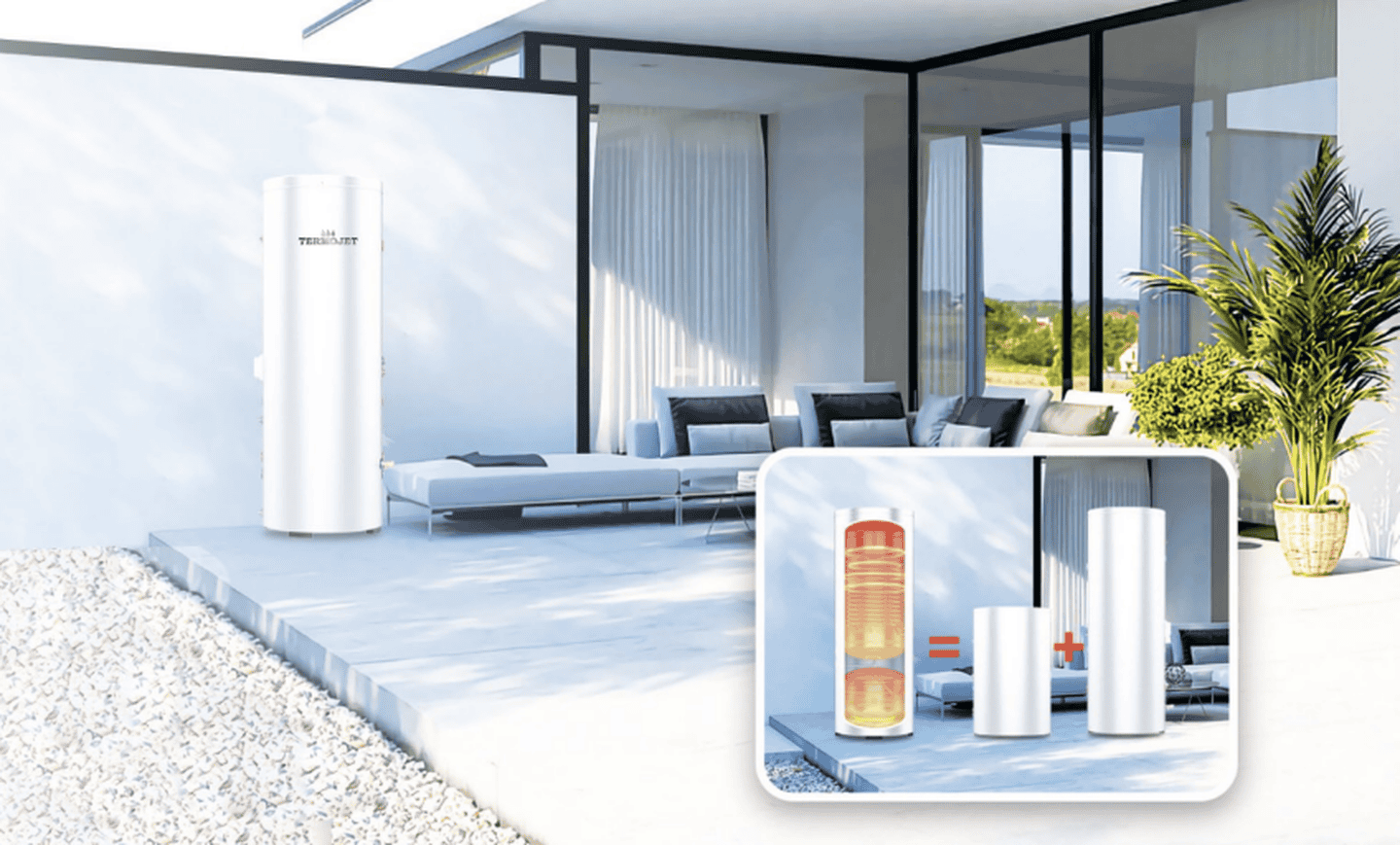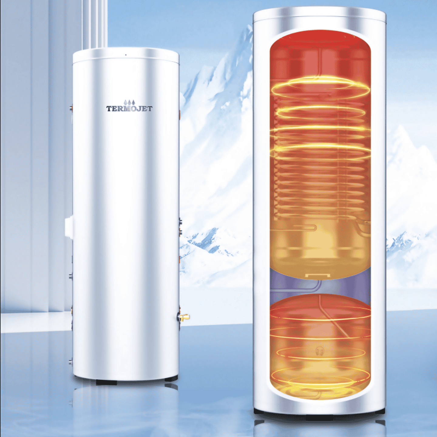 Бак розроблений спеціально для роботи з повітряними тепловими насосами, які працюють на низькотемпературному режимі. Завдяки великій площі теплообмінника (3,18 м²), тепло ефективно передається навіть при температурі води в подачі 35–55°C.
