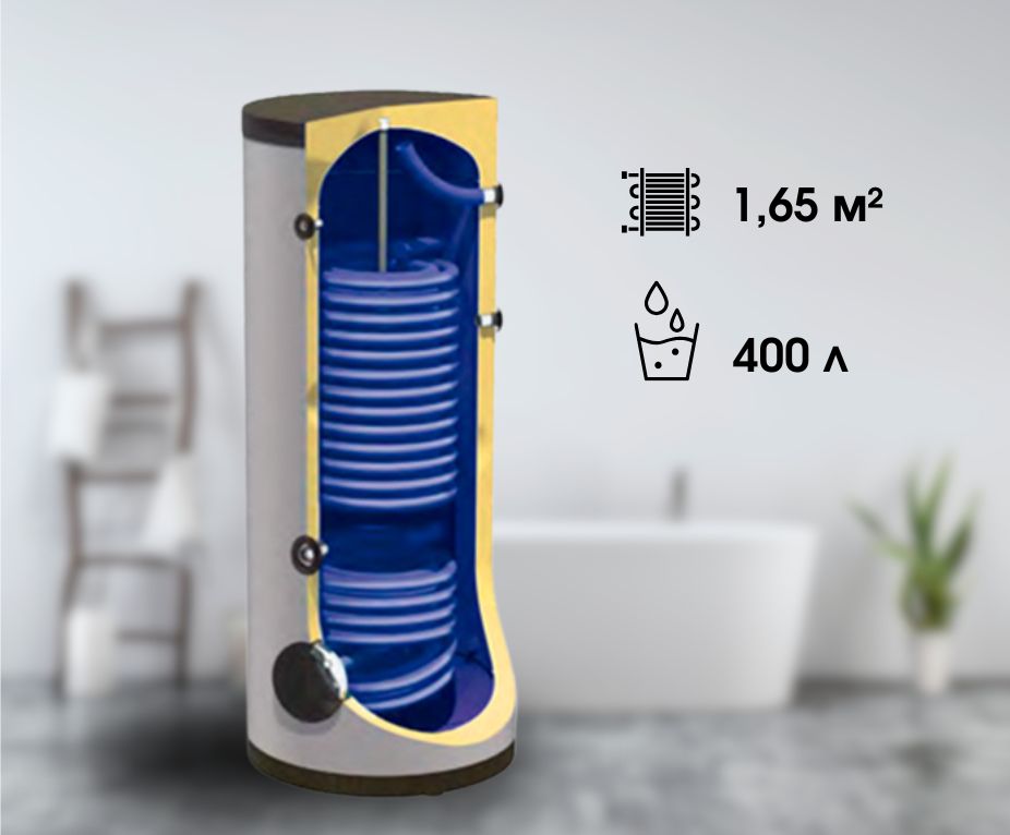 Бойлер Teplobak ВТЕ-1, бак для гарячого водопостачання на 400 л (площа теплообмінника 1,65 м²)
