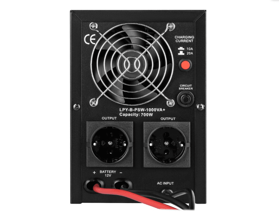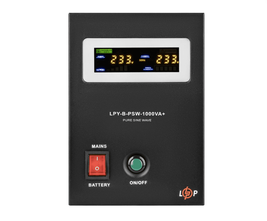 ДБЖ з правильною синусоїдою 12V LPY-B-PSW-1000VA+(700Вт) 10A/20A має потужність 1000/700 Вт.