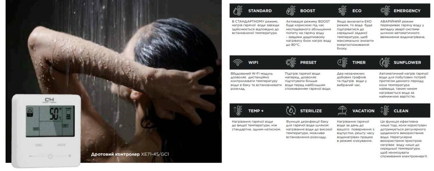 - Цей пристрій оснастили сучасними функціями, що підвищують зручність, безпеку та ефективність. Є Wi-Fi, що дозволяє дистанційно керувати системою зі смартфона.