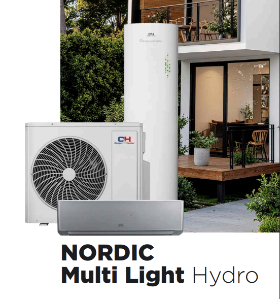 Система Nordic Multi Light Hydro — це інноваційне та енергоефективне гібридне рішення від Cooper&Hunter, яке поєднує звичну мультиспліт-функціональність із можливістю підключення бойлера гарячої води. Завдяки цій інтеграції, одна система може охолоджувати, обігрівати та нагрівати воду одночасно, забезпечуючи максимальний комфорт у будь-яку пору року.