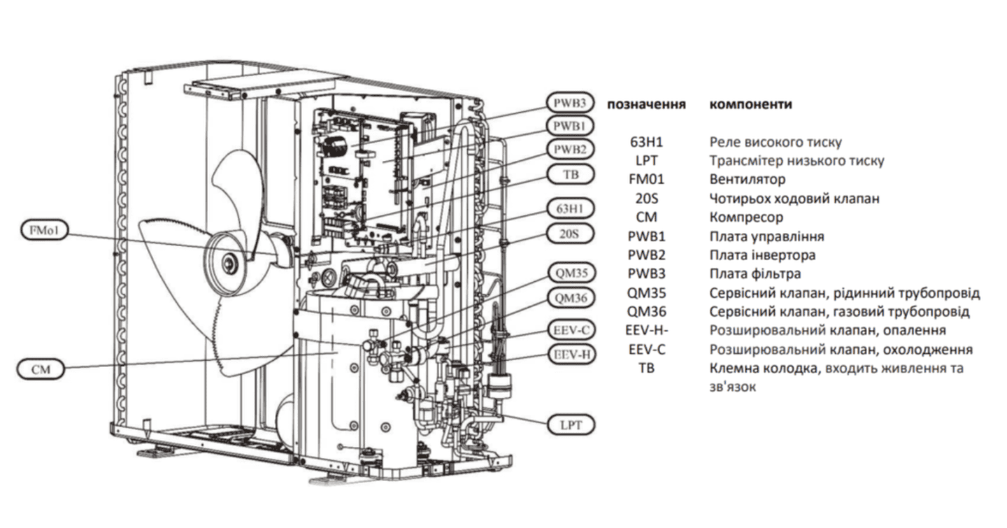 Конструкція зовнішнього блоку Mitsubishi HPC80VNX
