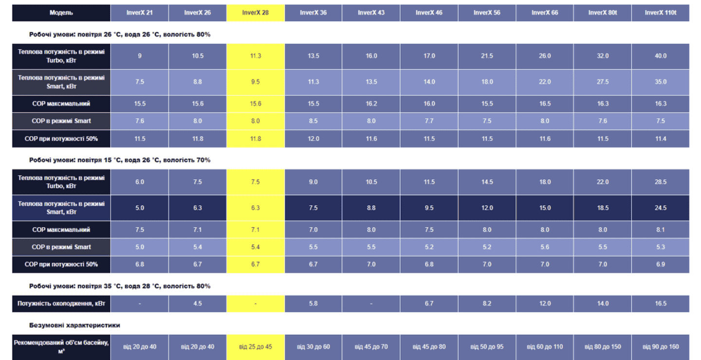 ПРИЗНАЧЕННЯ: Тепловий насос Fairland InverX 28 для басейну