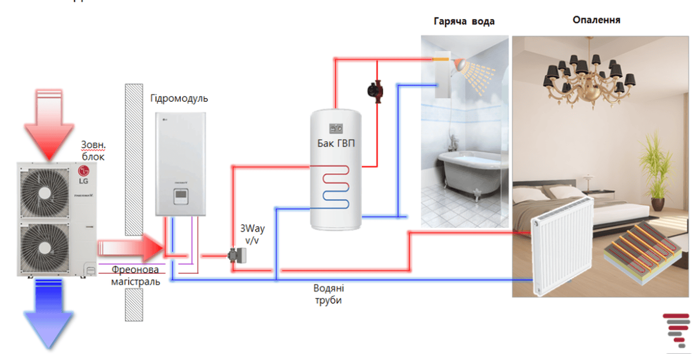 ПРИЗНАЧЕННЯ: LG ThermaV Series 5 тепловий насос для опалення, охолодження, ГВП