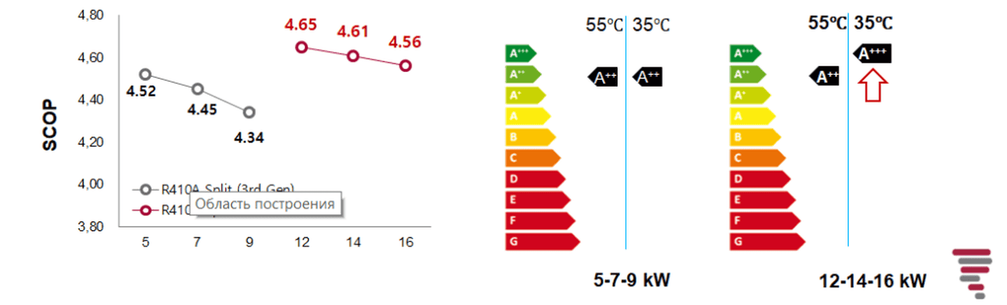 Клас енергоефективності A+++ робить цей тепловий насос економічно вигідним та екологічно чистим рішенням для опалення вашого дому. Використовуючи 75% відновлюваної енергії з повітря і 25% електроенергії, пристрій демонструє високу ефективність і допомагає значно знизити експлуатаційні витрати.