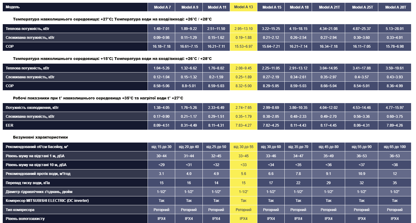 ПРИЗНАЧЕННЯ: Інвенторний тепловий насос Aquajoy Model А 13 для басейну