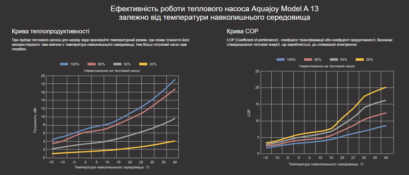 Тепловий насос Aquajoy Model A 13 має три режими роботи: