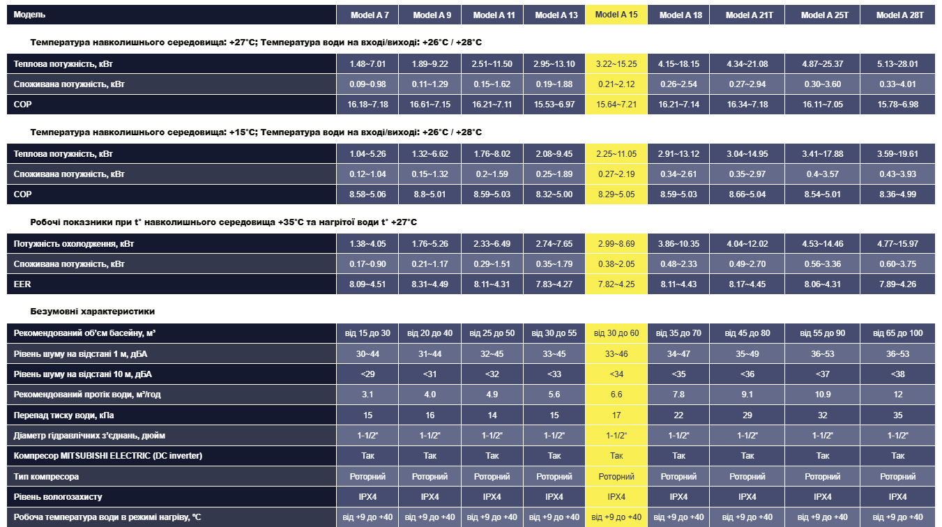 ПРИЗНАЧЕННЯ: Інвенторний тепловий насос Aquajoy Model А 15 для басейну