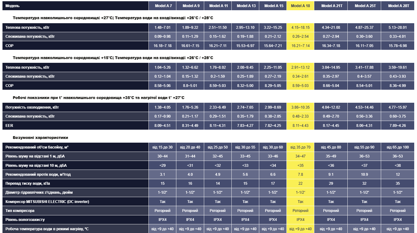 ПРИЗНАЧЕННЯ: Інвенторний тепловий насос Aquajoy Model А 18 для басейну