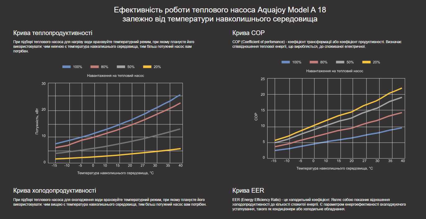 Тепловий насос Aquajoy Model A 18 має три режими роботи: