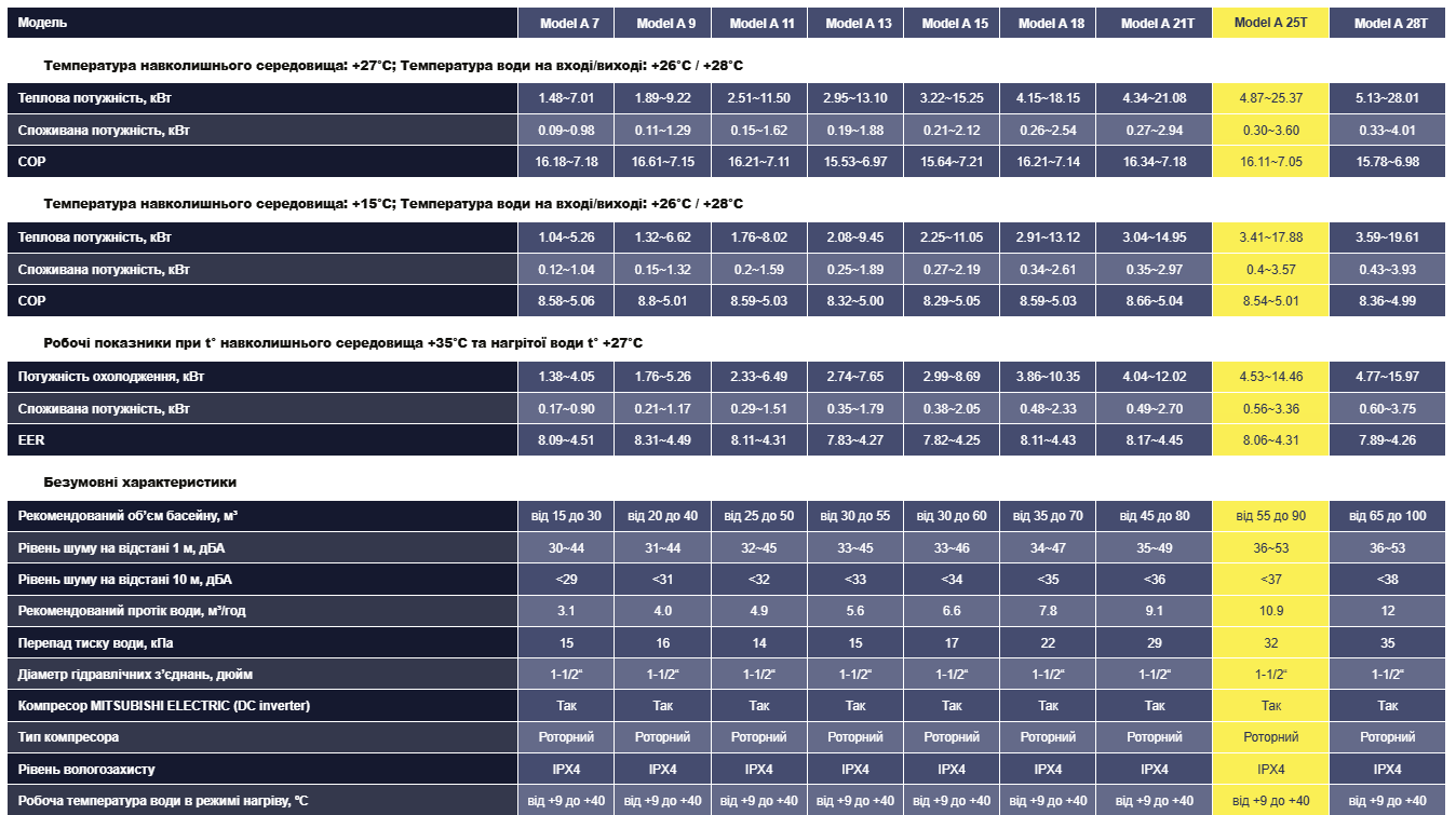 ПРИЗНАЧЕННЯ: Інвенторний тепловий насос Aquajoy Model А 25T для басейну