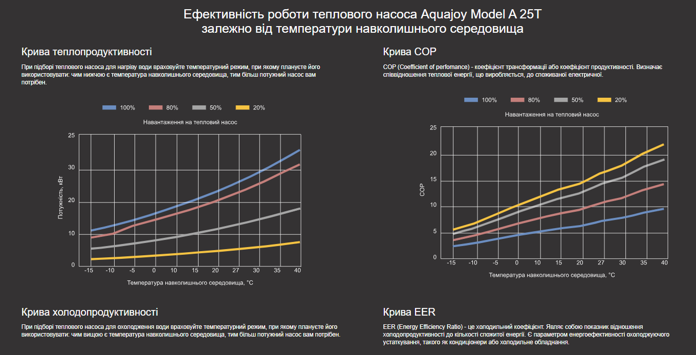 Тепловий насос Aquajoy Model A 25T має три режими роботи: