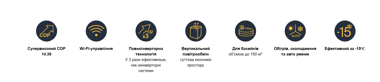 Тепловий насос обладнаний професійним компресором Mitsubishi та надійною системою ізоляції, що гарантує стабільну роботу при температурах зовнішнього повітря від –15°C до +48°C. Завдяки цьому можна користуватися басейном навіть на початку весни або восени, а також підтримувати комфортну температуру води протягом усього року.