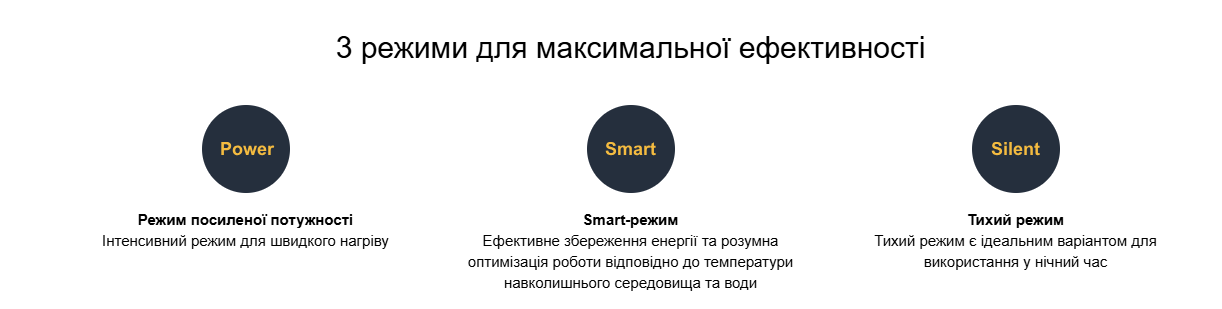 - Smart – оптимізований режим для економії електроенергії та плавного регулювання продуктивності;