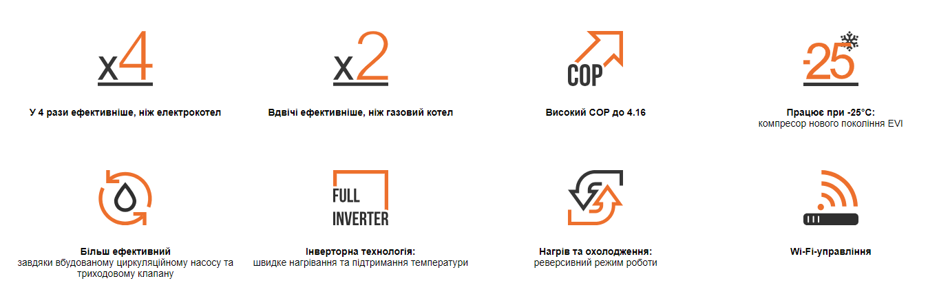 • Температура нагріву води: до +55°C навіть при -25°C на вулиці