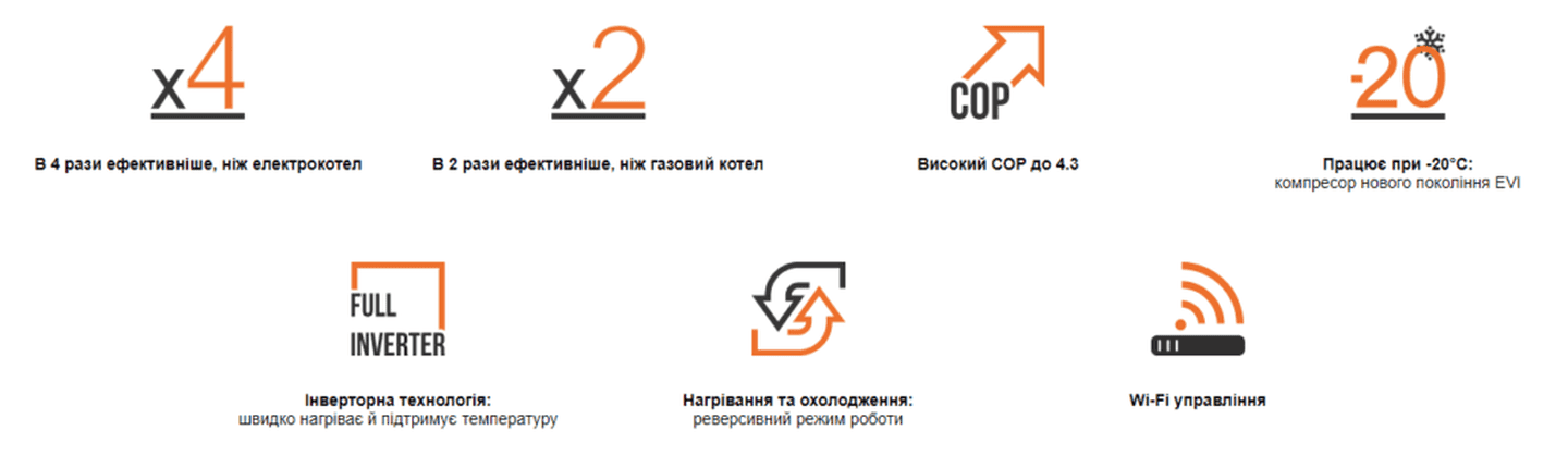 - Температура нагріву води: до +60°C навіть при зовнішній температурі -20°C
