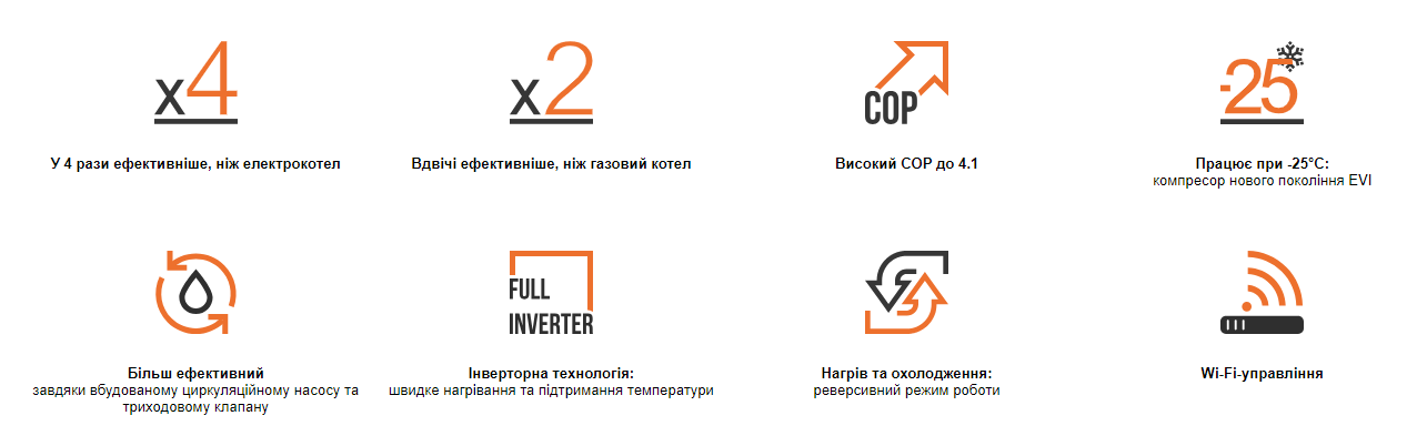 • Температура нагріву води: до +55°C навіть при -25°C на вулиці