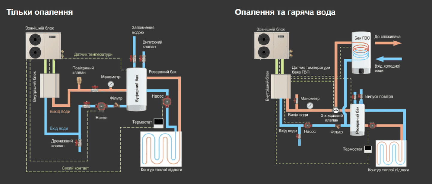 СХЕМА ВСТАНОВЛЕННЯ ТЕПЛОВОГО НАСОСУ