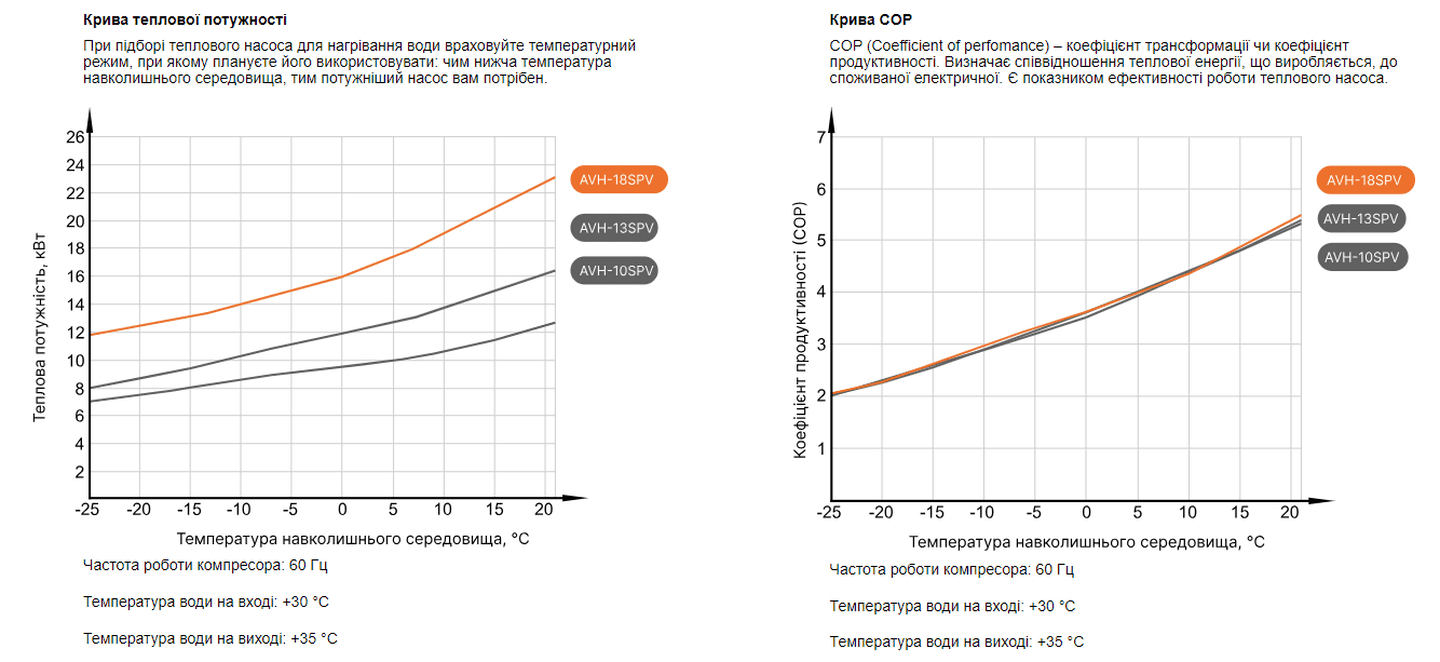 • Висока продуктивність: Навіть при низьких температурах зовні, система підтримує ефективне опалення та нагрів води.