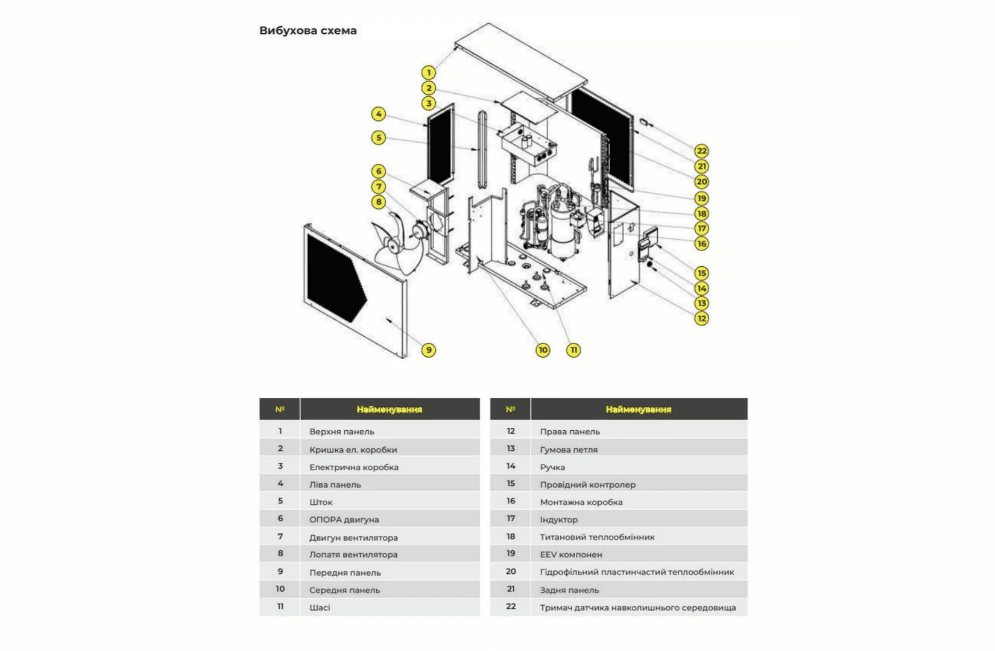 Комплектація: муфта для підключення, дренажний з’єднувач, дренажна труба і шланг. Ці компоненти спрощують установку та підключення теплового насоса, роблячи процес простим та зручним.
