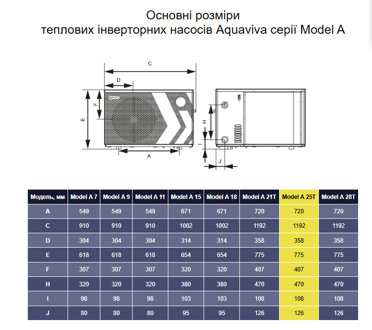 ПРИЗНАЧЕННЯ: Інвенторний тепловий насос Aquaviva Model А 25Т для басейну