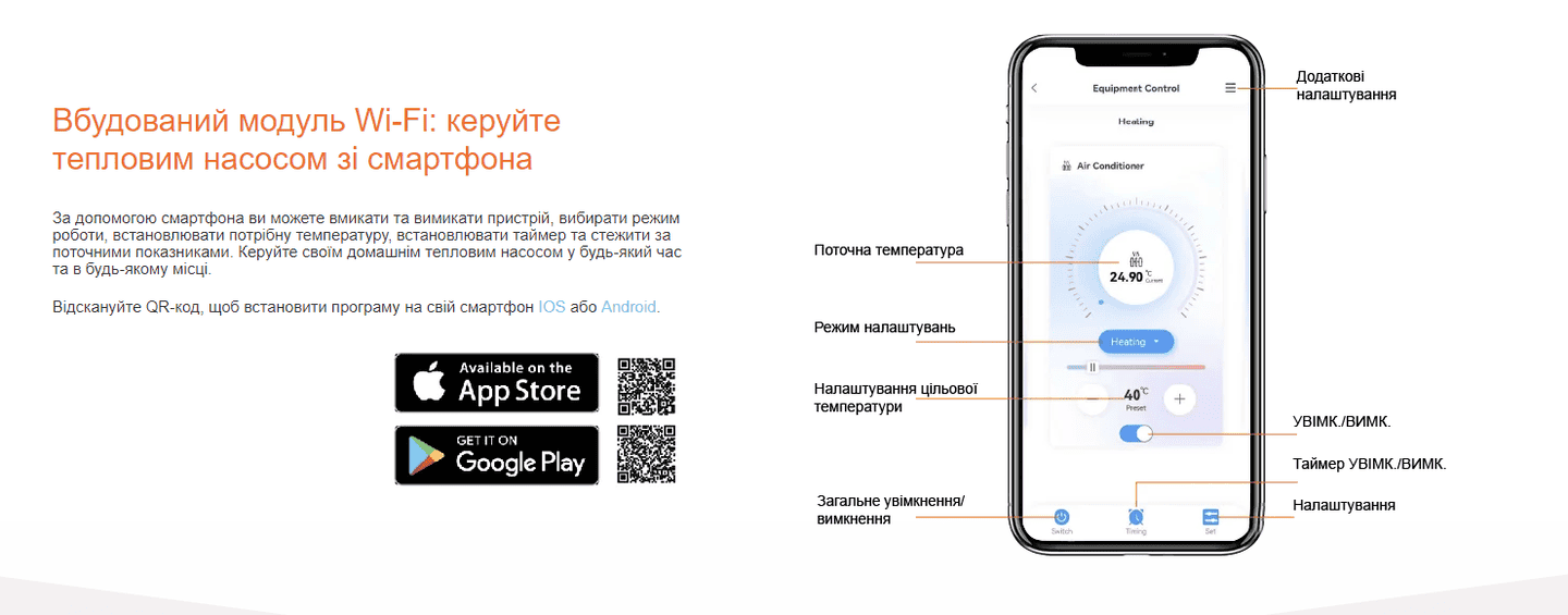 ДОДАТКОВІ ПЕРЕВАГИ: Wi-Fi керування, вбудований циркуляційний насос та триходовий клапан, 7 режимів роботи