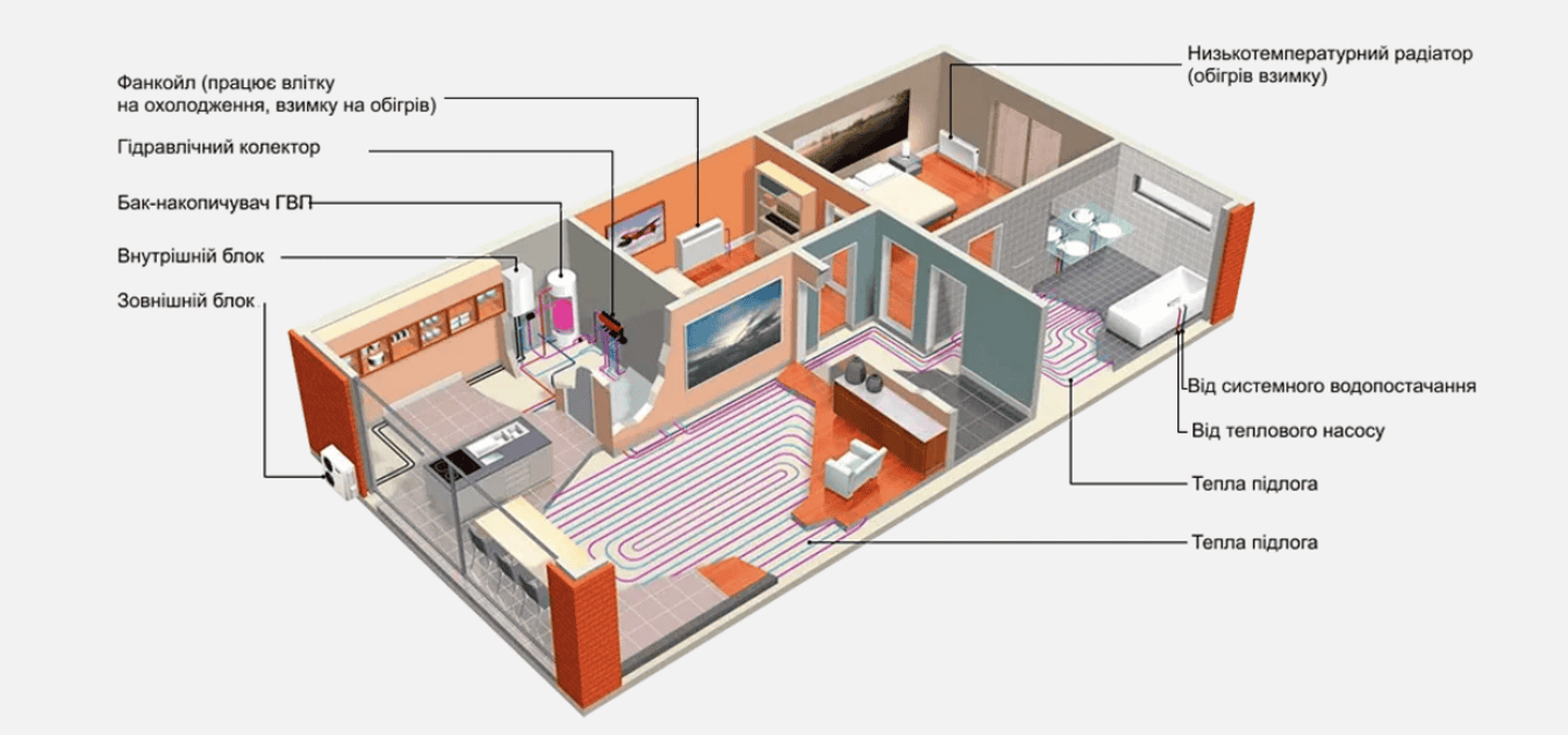 ПРИЗНАЧЕННЯ: Aquaviva тепловий насос для опалення, охолодження та гарячого водопостачання