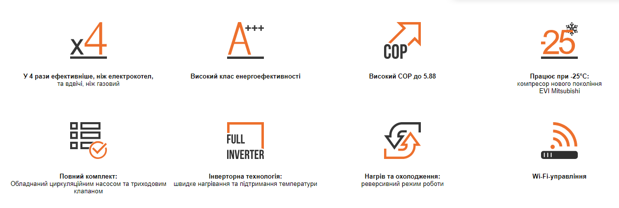 Енергоефективність: до 5.88 кВт теплової енергії на 1 кВт електроенергії