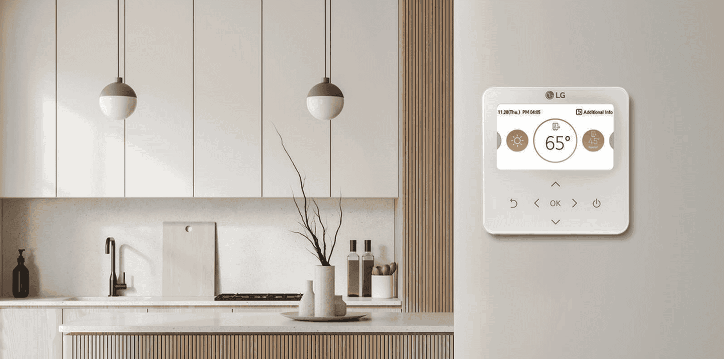Додаток LG ThinQдозволяє кінцевим користувачам легко керувати своєю системою опалення, як ніколи раніше. Завдяки інтуїтивному управлінню THERMA V за допомогою одного дотику, користувачі можуть керувати пристроєм навіть віддалено, перебуваючи поза домом. Достатньо сказати “Увімкни/вимкни THERMA V”, і AI-спікер виконає команду. Додаток LG ThinQ постійно моніторить THERMA V, дозволяючи легко контролювати енергоспоживання як для щоденного обслуговування, так і для інших потреб.