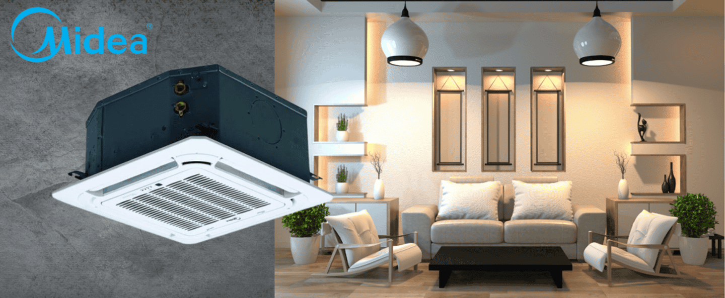 ПРИЗНАЧЕННЯ: Касетний фанкойл Midea для охолодження та обігріву приміщень