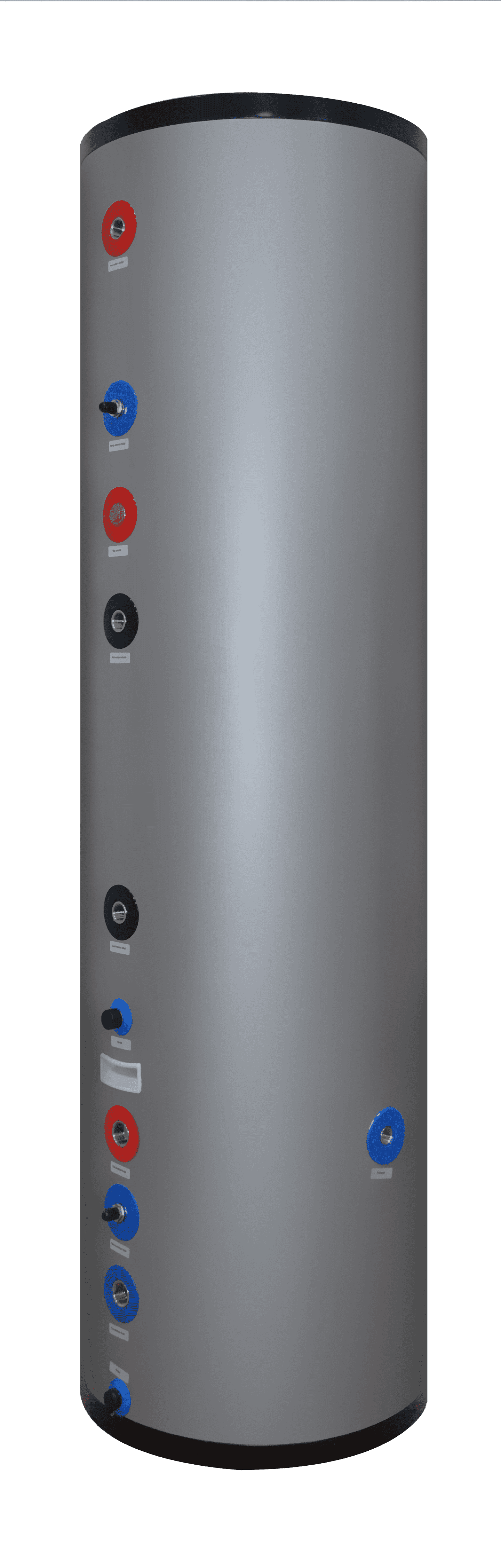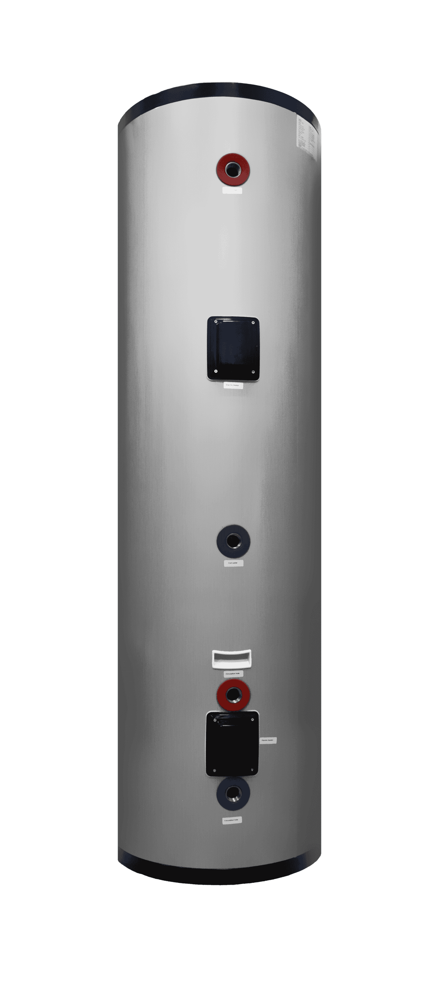Непрямий нагрівальний бак на 245 літрів складається з двох частин, об’єднаних в одному корпусі: бака буфера на 65 літрів, розташованого внизу, та резервуару для нагрівання гарячої води (ГВП) на 180 літрів із вбудованим змійовиком площею 3 квадратних метра, розміщеного зверху. Корпуси баків виготовлені з нержавіючої сталі. SUS 304 — 1,2 мм, а вбудований змійовик із нержавіючої сталі марки SUS 316. Бак має якісне утеплення з поліуретану завтовшки. 55 мм, що дозволяє використовувати систему як для нагрівання, так і для охолодження.