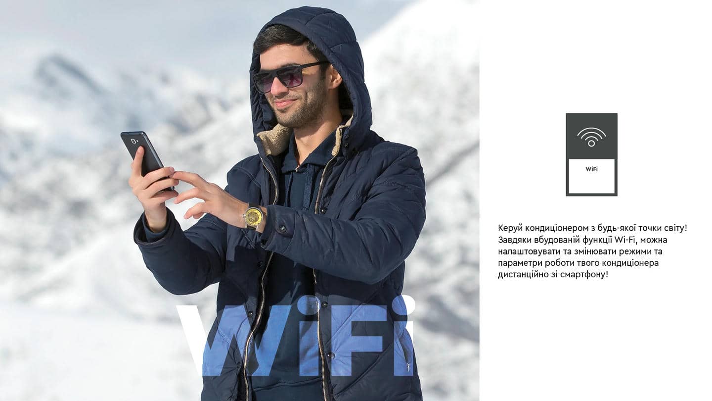 Дистанційне керування через смартфон або планшет (iOS / Android) дозволяє користувачу повністю контролювати роботу кондиціонера навіть поза межами дому: встановлювати графіки, перемикати режими, перевіряти температуру тощо.