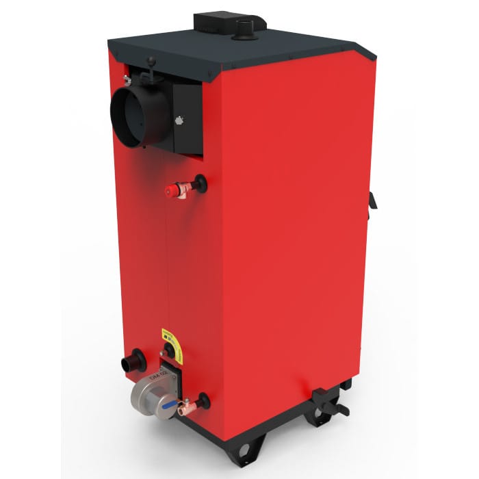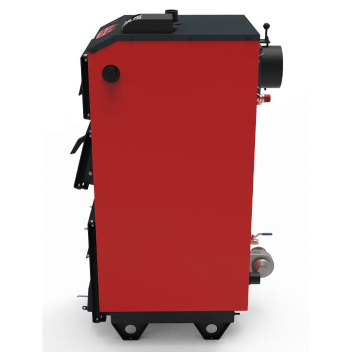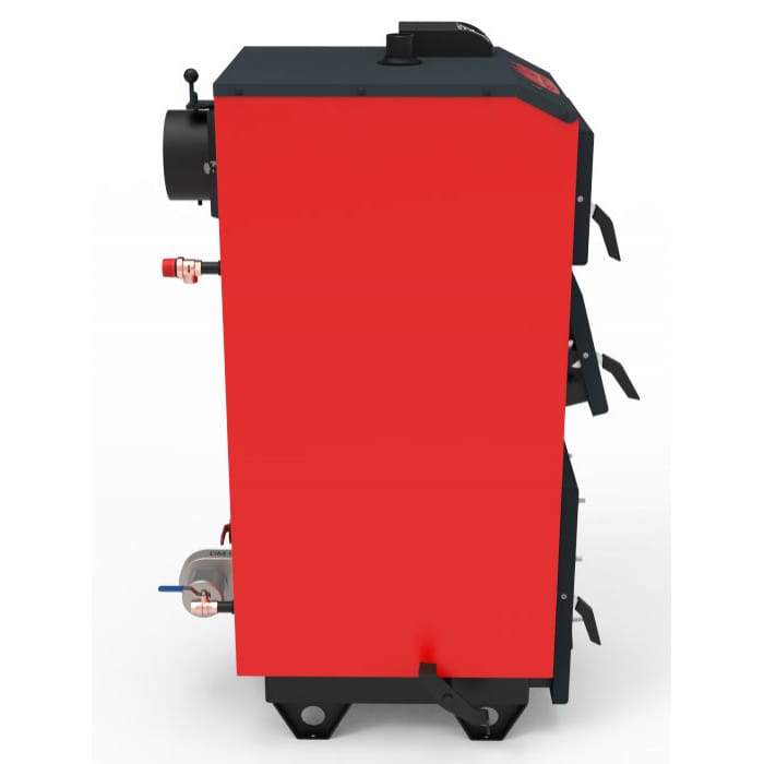 На задньому боці котла розташовано димохід із шибером газоходу поворотним, патрубки обороту і подачі, запобіжний клапан і зливний патрубок із кульовим краном. Котел обладнано декоративним кожухом із шаром теплоізоляції.