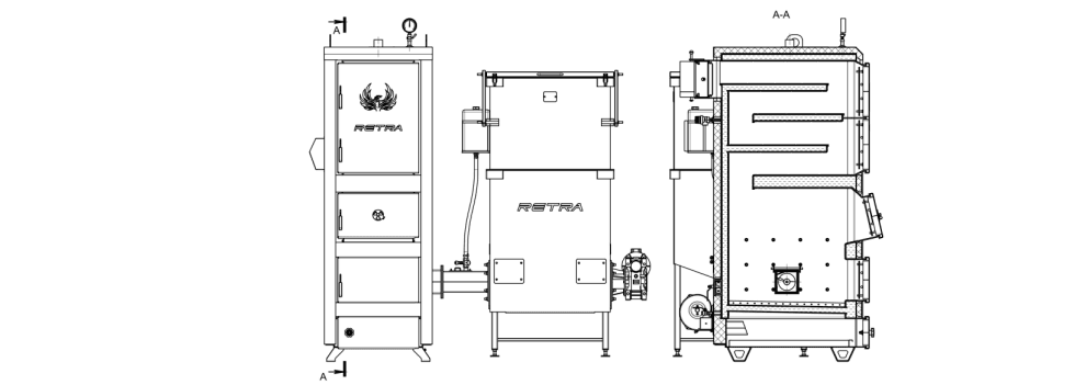 Твердопаливні котли Retra-5М Plus призначені для побутового використання і працюють за принципом верхнього спалювання палива. Стінки та колосникова решітка котлів охолоджуються водою і виготовлені з високоякісного сталевого листа 3 мм. Завантаження палива і видалення золи здійснюється вручну, а котли оснащені механічним розпушувачем палива.