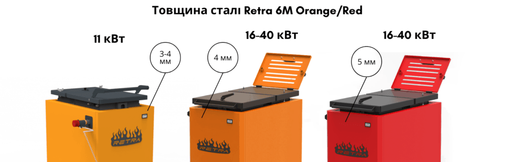 - Матеріал теплообмінника: якісна котлова сталь 3-4 мм (Orange) та 5 мм (Red).