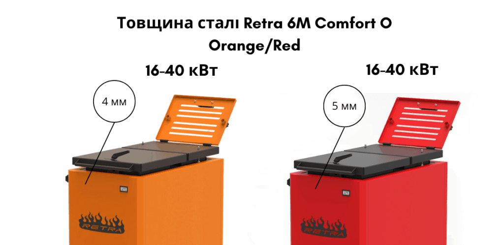 • Матеріал теплообмінника: якісна котлова сталь 4 мм (Orange) та 5 мм (Red).