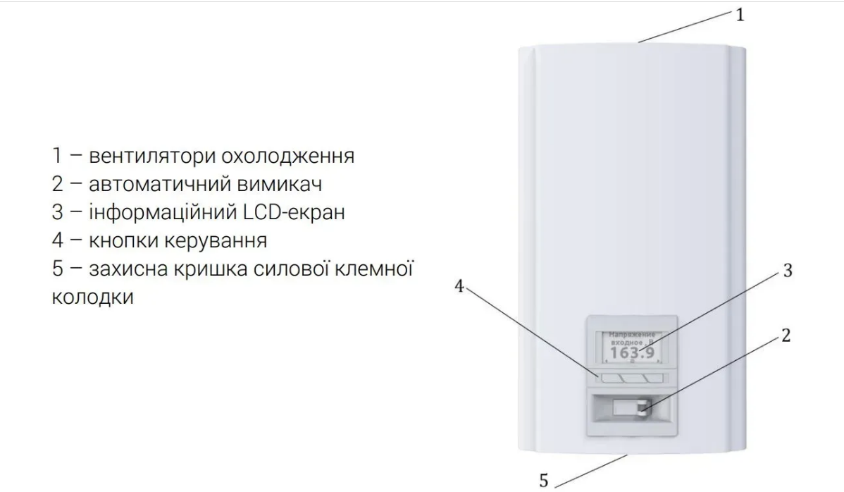 - Подвійний світлодіодний екран: однофазний стабілізатор оснащений зручним подвійним світлодіодним екраном, який дає змогу вам моніторити поточний стан стабілізатора і вхідну напругу. Це забезпечує зручність використання і контролю за пристроєм.