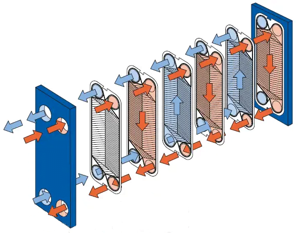 Пластинчасті теплообмінники передають теплову енергію без змішування двох продуктів по обидва боки, що робить їх ідеальним вибором для поділу двох контурів, таких як тепловий насос і технологічний контур.