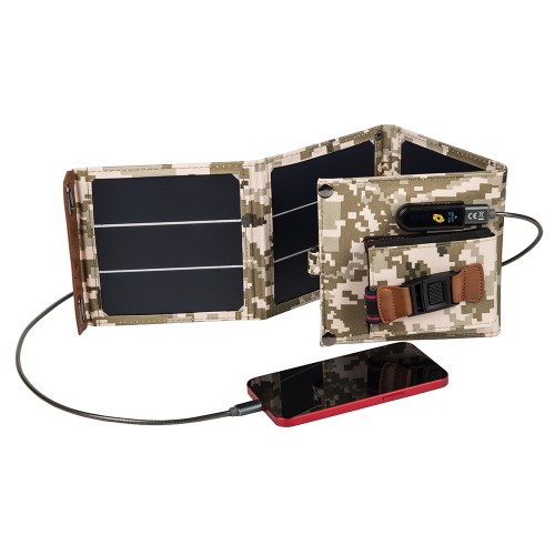 Дуже компактна та зручна сонячна панель на монокристалічних фотоелементах що робить її найкращим вибором для прогулянок на природі та мандрівок. Дана панель дозволяє заряджати смартфони,