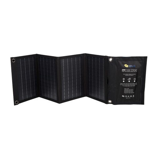 Монокристалічна сонячна панель ALTEK ALT-28 потужністю 28Вт з трьома виходами USB є оптимальним варіантом для мандрівників, рибалок, мисливців і всіх кому важливо мінімальна вага та компактні розміри при максимальній ефективності. За допомогою даної панелі можна заряджати павербанки, смартфони, смарт годинники, без дротові навушники та інші малопотужні пристрої. Панель дуже компакта та легка, без проблем можна покласти її у внутрішню кишеню рюкзака, кофр мотоцикла і навіть в розкладеному стані не займе багато місця в надувному човні.