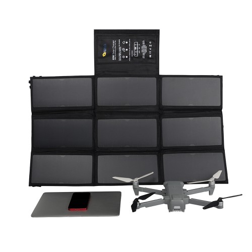 Мобільна сонячна панель ALT-63 зможе швидко зарядити ваші пристрої завдяки технології швидкої зарядки (Power Delivery) від роз’ємів USB-С: 5В-3A  та DC: 19В-3А, при цьому зможе заряджати і інші пристрої котрі підключені до панелі.