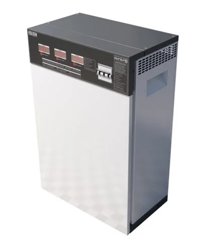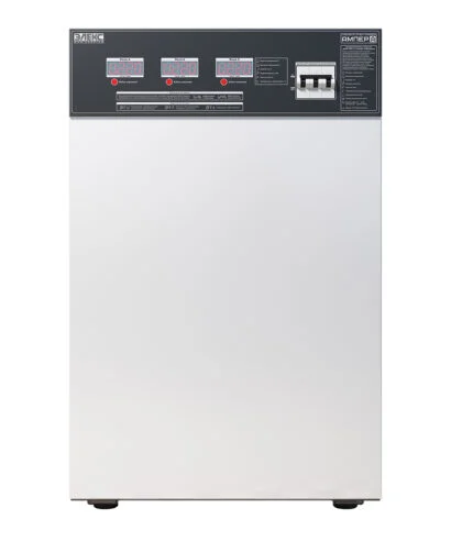 ПРИЗНАЧЕННЯ: Трифазний стабілізатор напруги Ампер У 12-3/50 v2.0 для підтримки максимально наближеного до номіналу значення напруги.