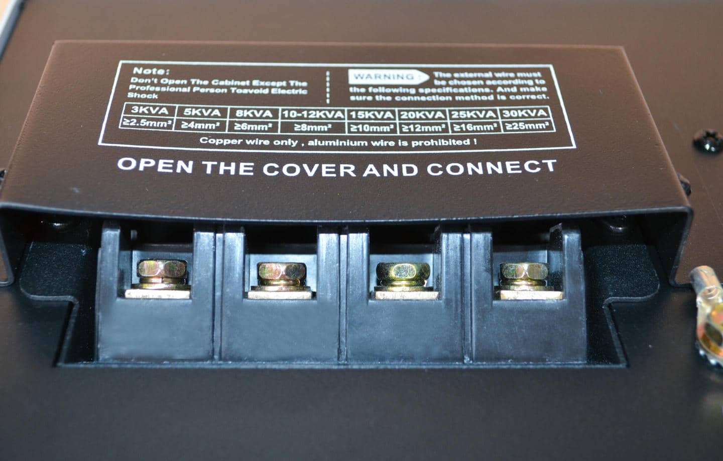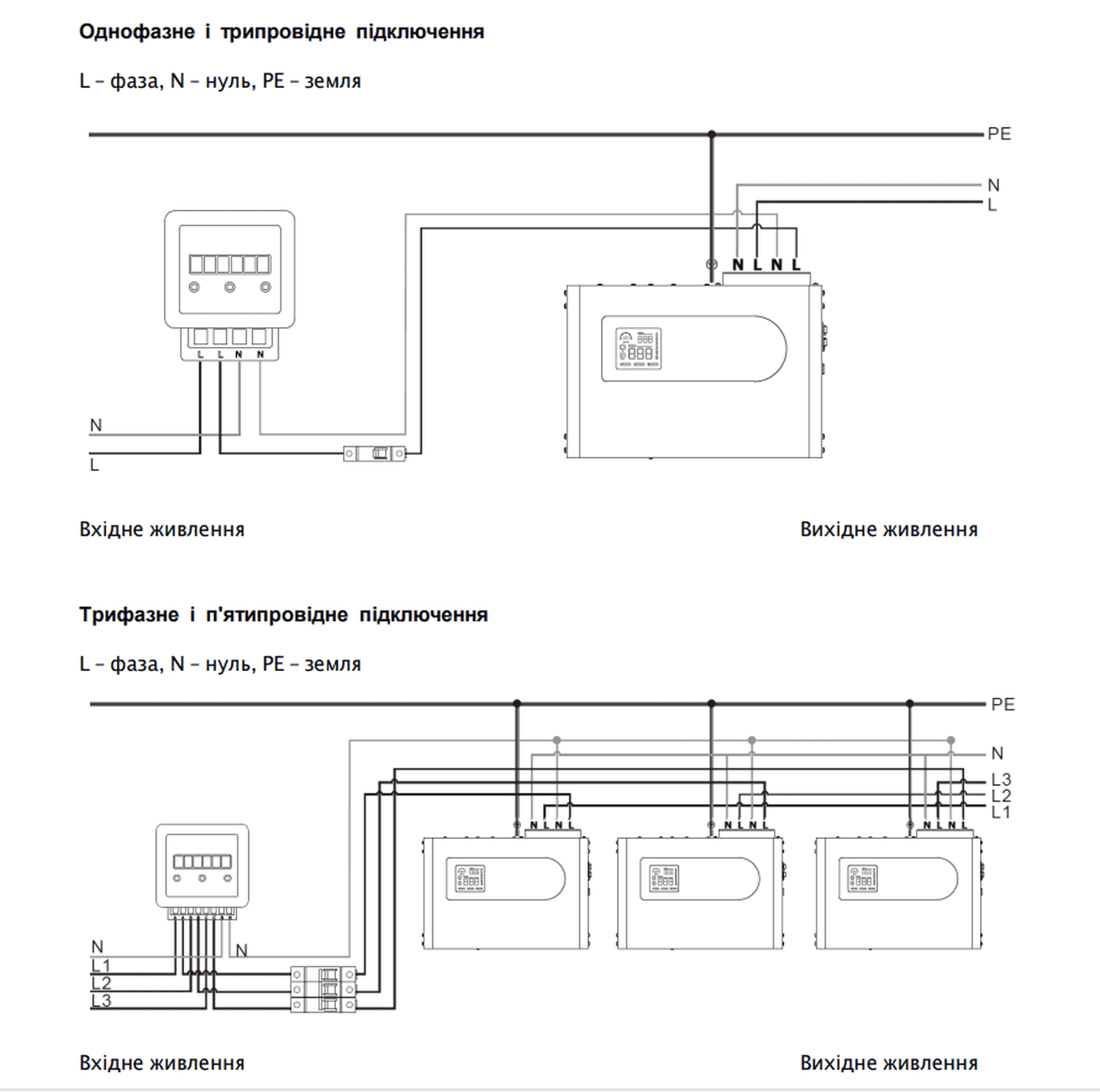 Під час під’єднання регулятора до мережі використовуйте з’єднувальний мідний дріт із достатньою пропускною здатністю струму відповідно до номінальної потужності (див. таблицю нижче). Якщо довжина з’єднувального дроту велика, слід використовувати дріт з великим поперечним перерізом, щоб зменшити втрату потужності.