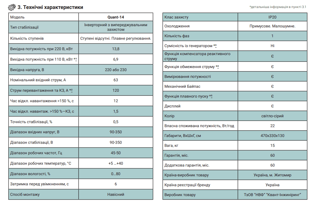 ПРИЗНАЧЕННЯ: Стабілізатор напруги Quant-14 для для будинку, для зварювального апарата, для квартири, для медичного обладнання, для сонячних електростанцій