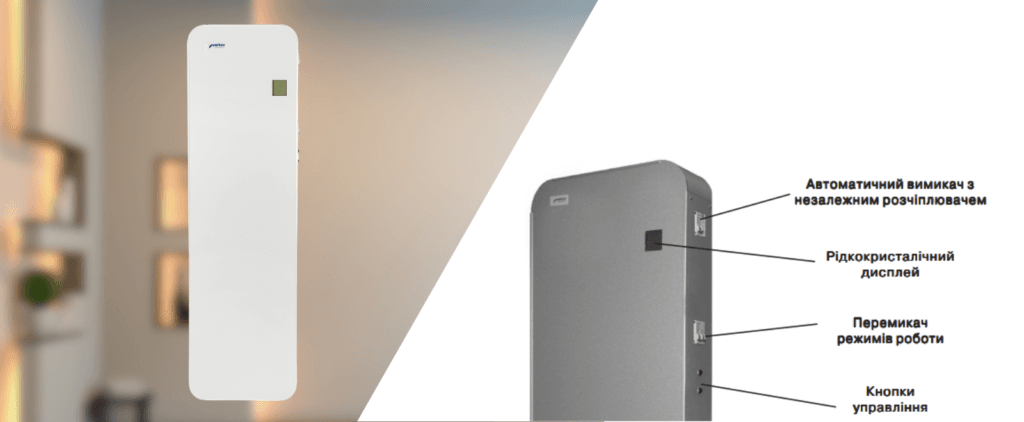 На бічній панелі стабілізатора розташовані автоматичний вимикач з незалежним розчіплювачем, перемикач режимів роботи “Стабілізація-Транзит” і кнопки управління.