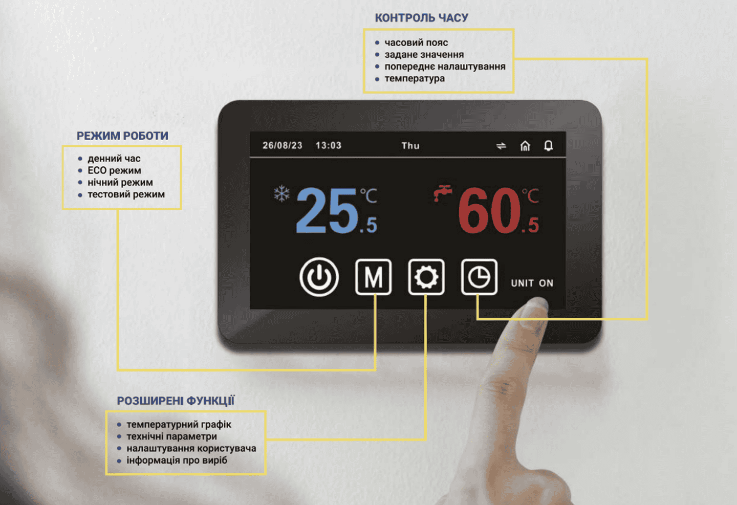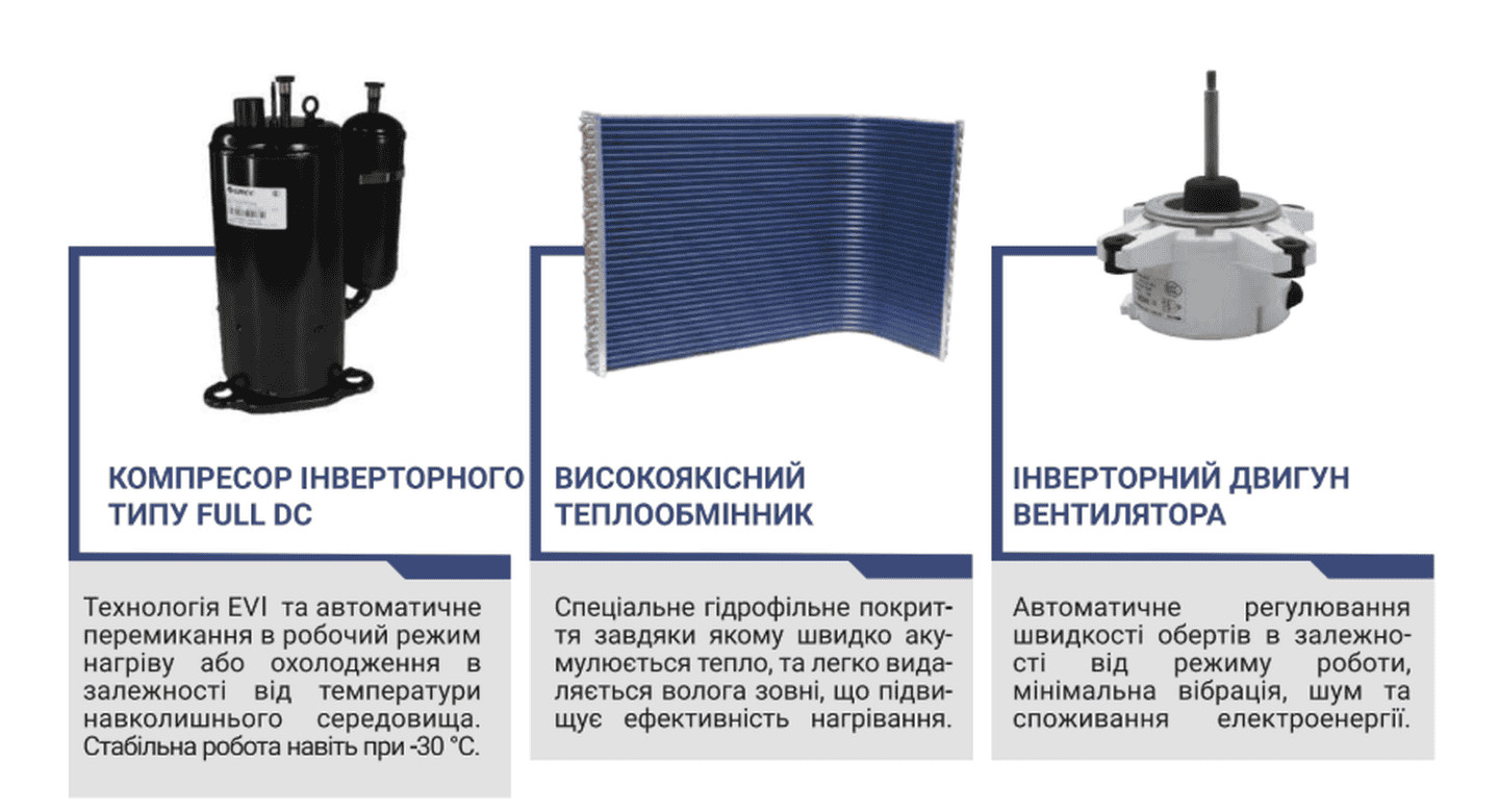 ДОДАТКОВІ ПЕРЕВАГИ: Wi-Fi керування, EVI інвертор, Тихий режим