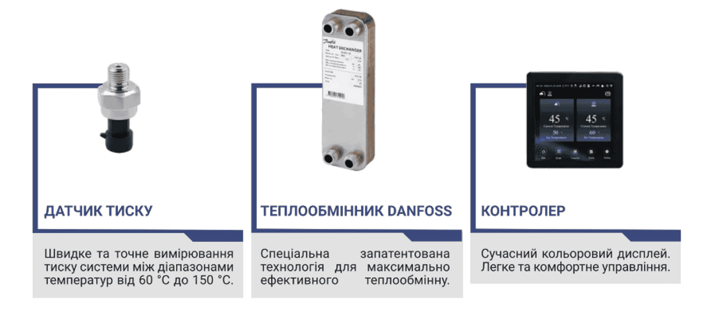 • Компресор Copeland з технологією EVI: Використовується надійний компресор, що гарантує ефективну роботу системи.