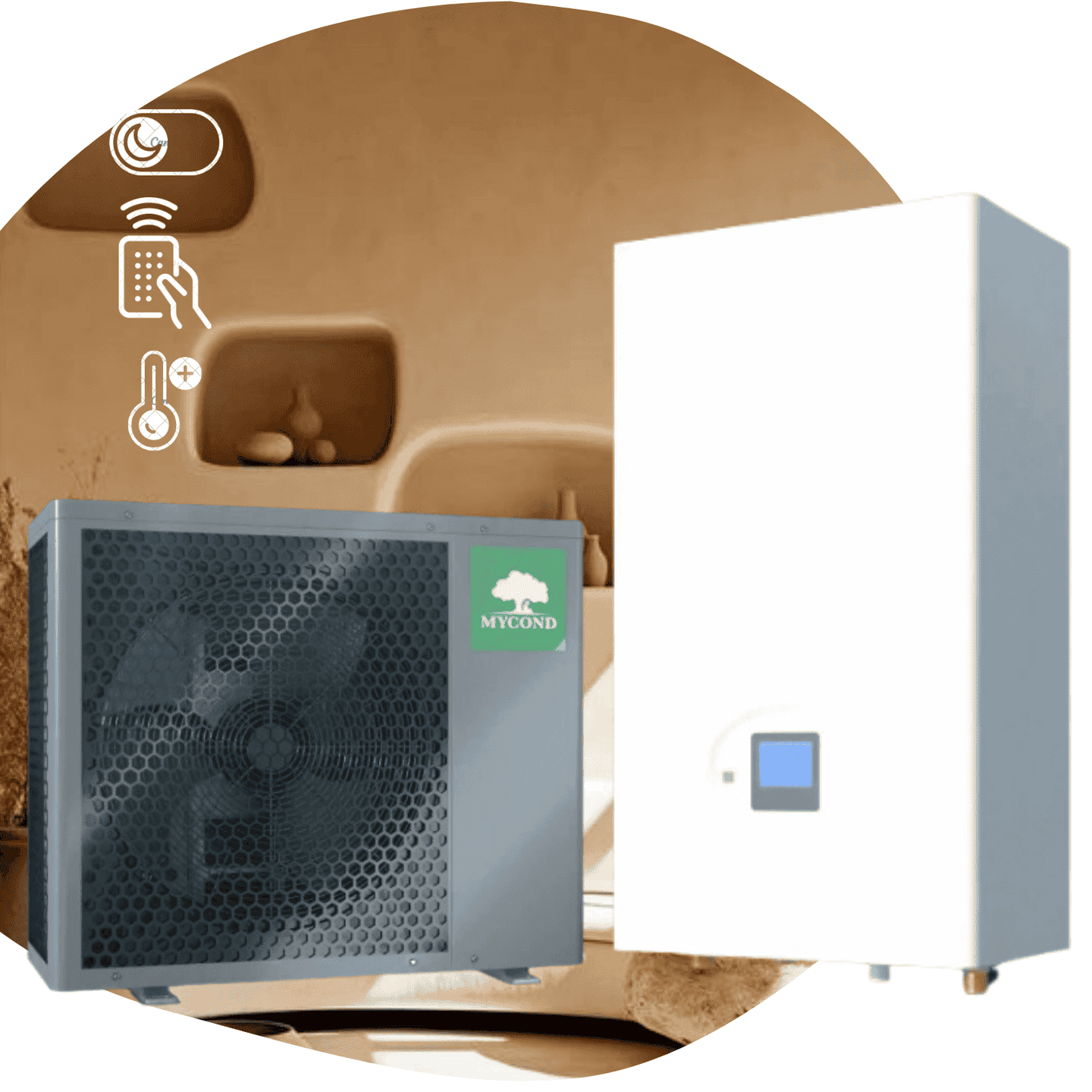Теплові насоси серії MYCOND BeeHeat вражають своєю високою ефективністю, стильним дизайном та широким функціоналом автоматики. Mycond BeeHeat — це не лише вдала інвестиція для нових будівель, але й ідеальний вибір для модернізації існуючих систем опалення та гарячого водопостачання. Реверсивний режим роботи дозволяє використовувати цей тепловий насос як кондиціонер у літній період, забезпечуючи комфортний мікроклімат протягом всього року.