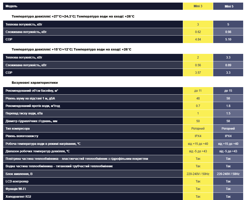 ПРИЗНАЧЕННЯ: Тепловий насос Aquajoy Mini 3 ON/OFF для басейну
