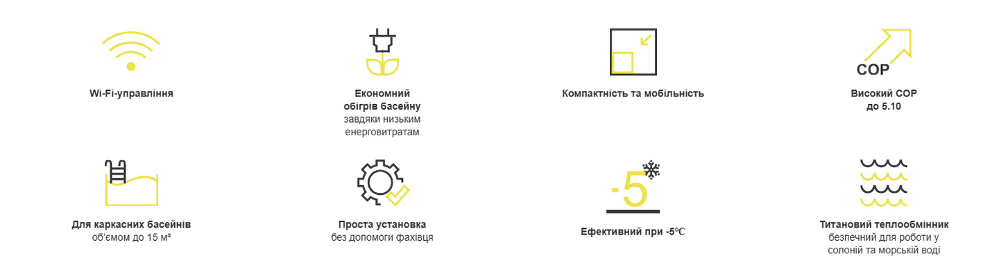 ПРИЗНАЧЕННЯ: Тепловий насос Aquajoy Mini 5 ON/OFF для басейну